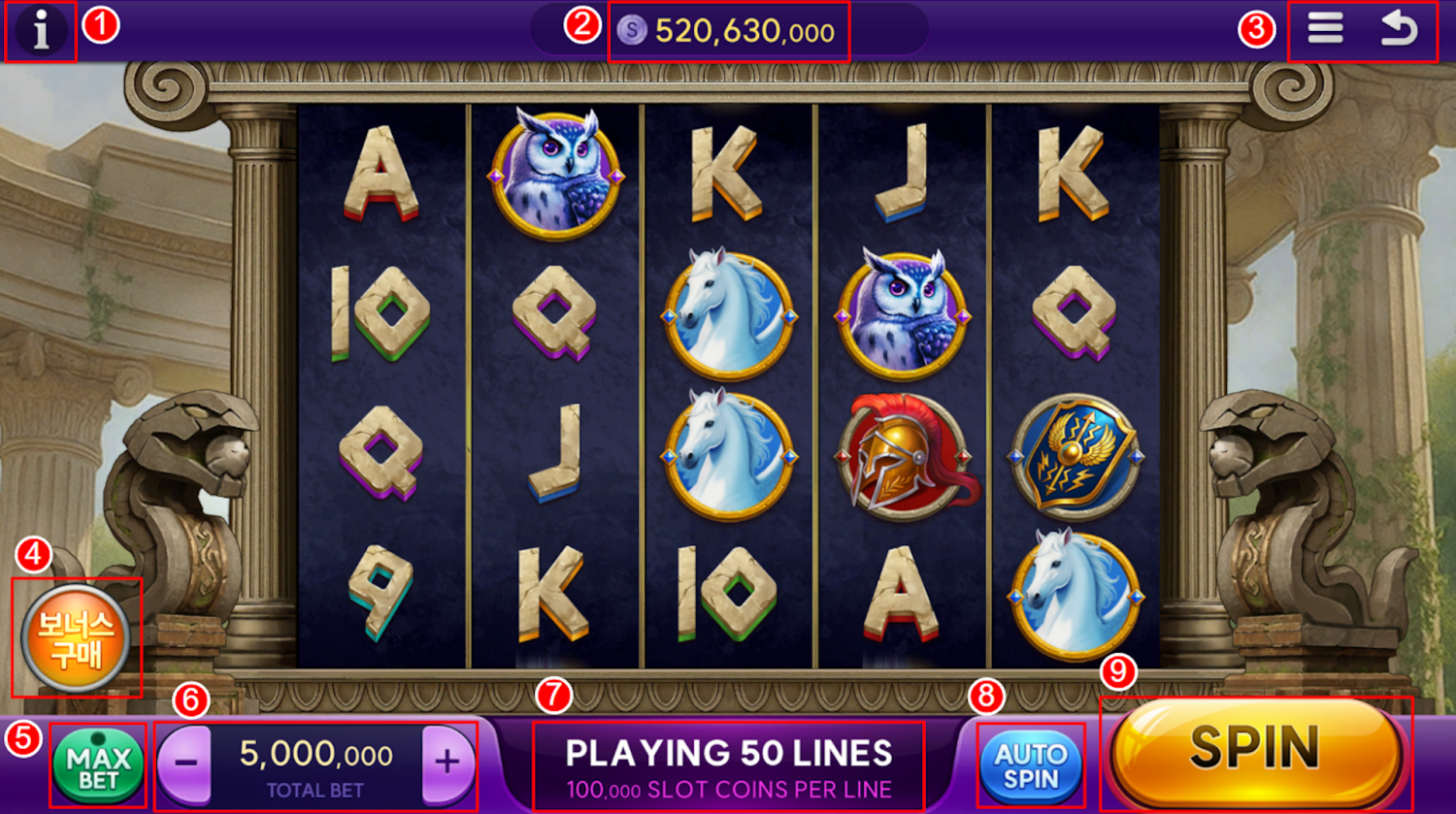 슬롯 화면 안내